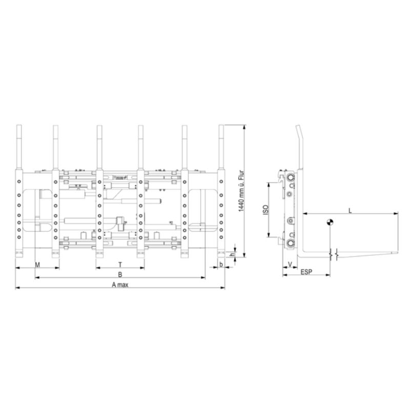 - Rehausses au dos des fourches de hauteur 1440 mm depuis le sol (ajourées en option)