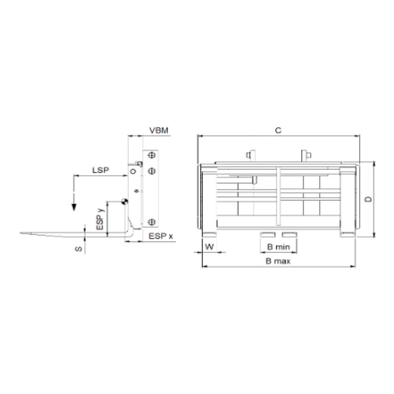 Positionneur de fourches intégré version à fourches et déplacement latéral constant 366 ISS