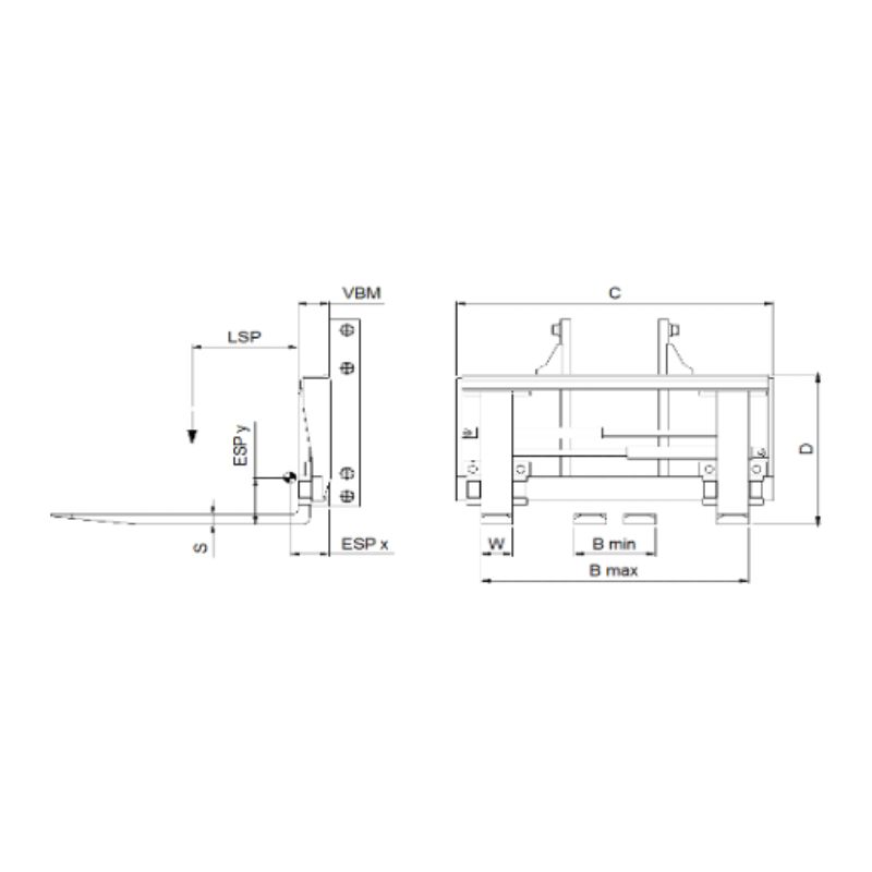 Positionneur de fourches intégré version à fourches et déplacement latéral intégré 266 ISS