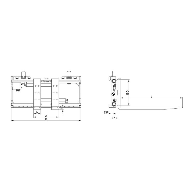 Positionneur de fourches rapporté version à fourches boulonnées et déplacement latéral intégré RZV-G